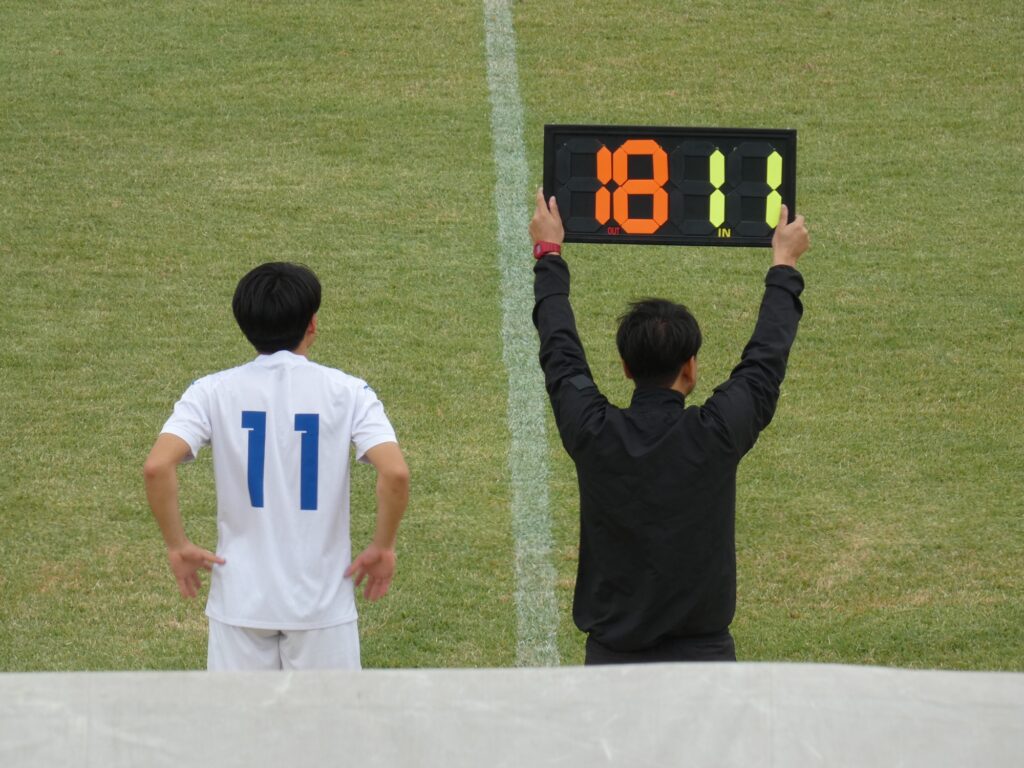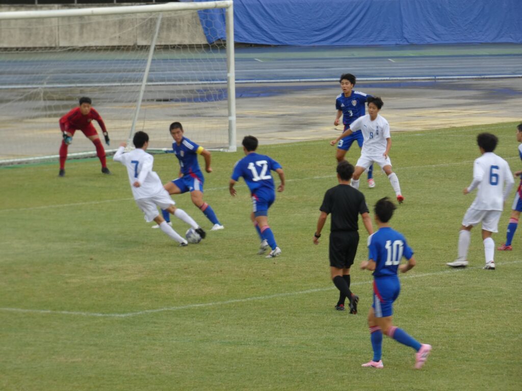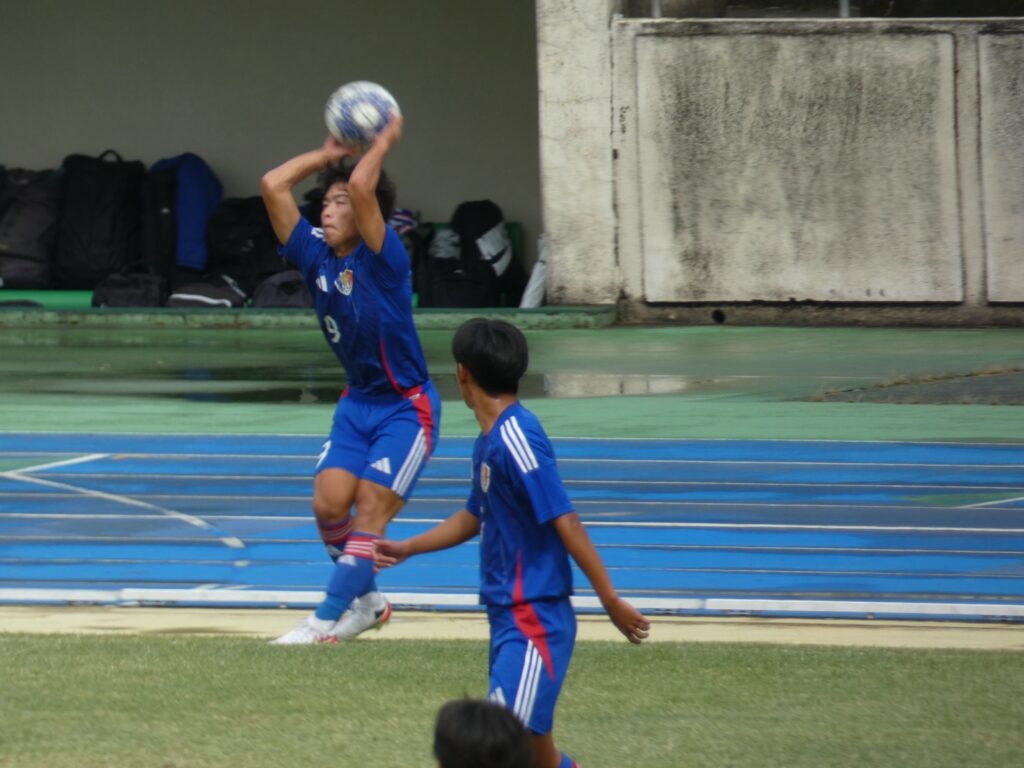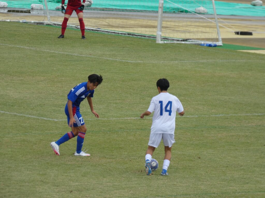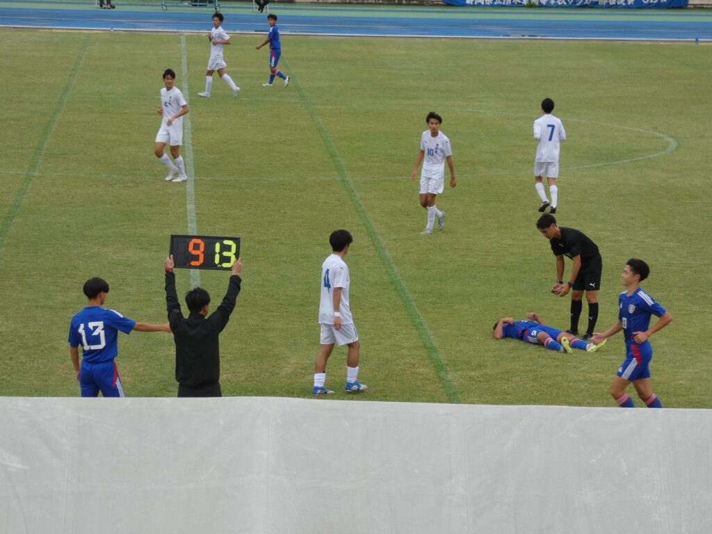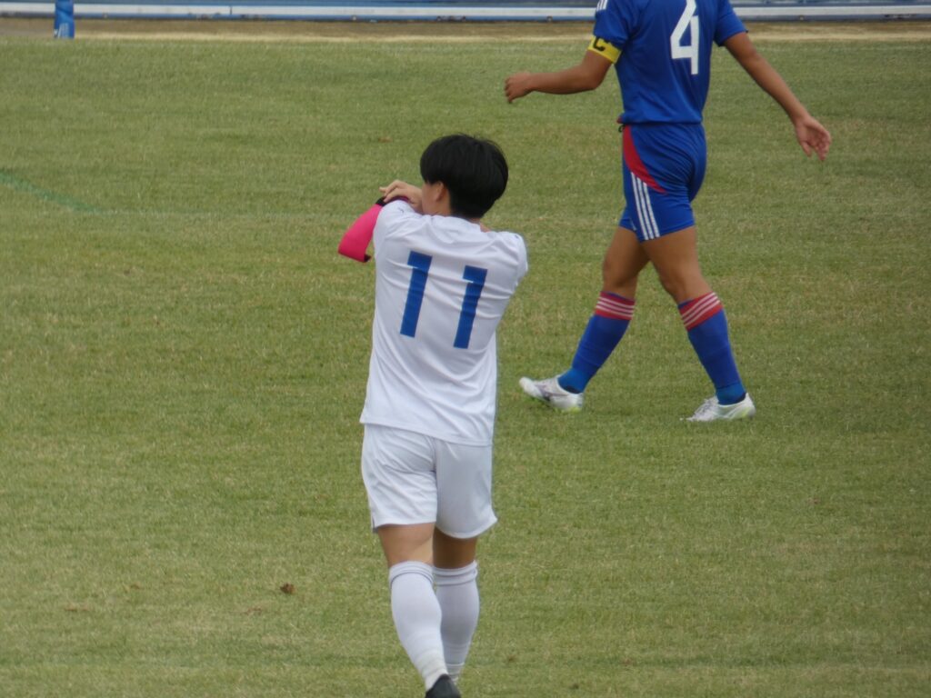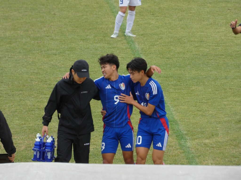 後半27分、試合再開直後に途中出場の白川がクロスバー直撃のシュート。この後、後半29分に田中莉安が足を攣ったのか倒れ込み、このままMF水野廉太に交代。