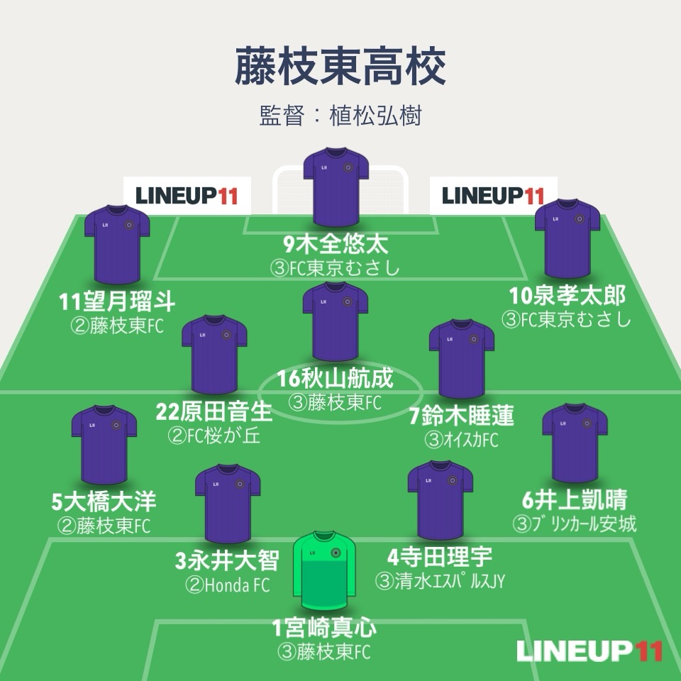 藤枝東のスタメンは3試合連続同じ。GK宮崎真心、4バックはDF井上凱晴、DF寺田理宇、DF永井大智、DF大橋大洋。ボランチはMF鈴木睡蓮とMF南部陽哉。2列目はMF澤野翔祐、MF泉孝太郎、MF望月瑠斗。1トップはFW増田瑛斗。