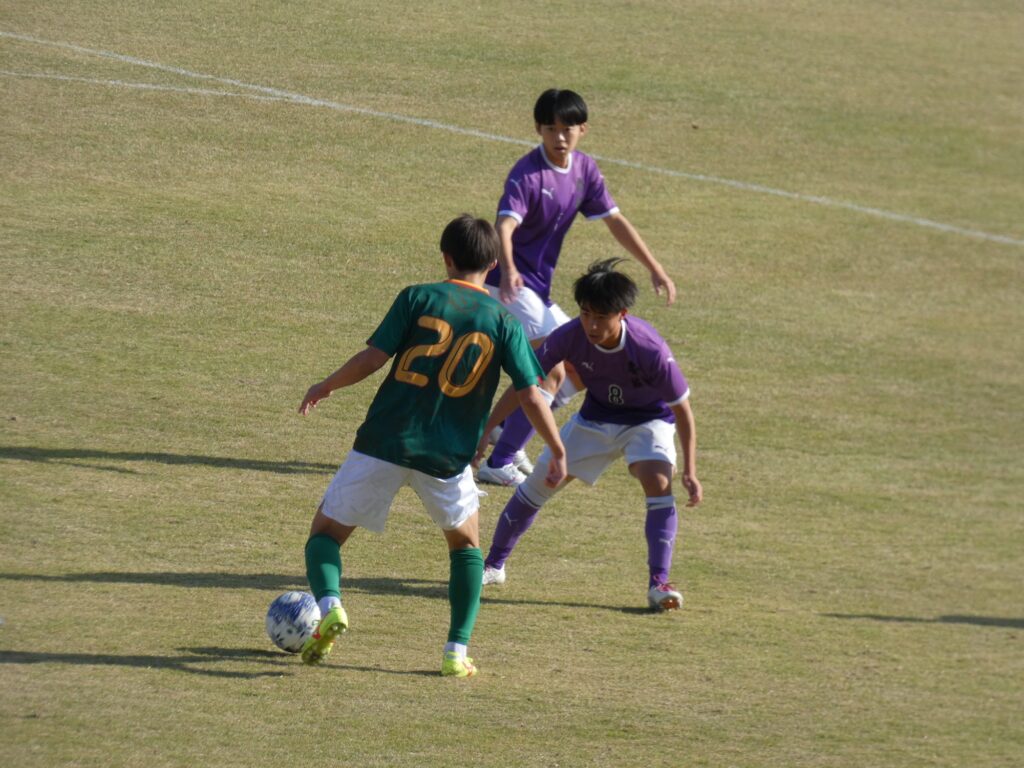 静学のドリブルに対して複数人で対応し、ボールをしっかり奪い切っているのが印象的でした。静学の注目は神吉俊之介のドリブルでしたが、対面の望月瑠斗や大橋大洋が上手く対応していました。ほかにも高い位置で静学のパスミスを奪ってショートカウンターを仕掛けるなど、かなりハマっていたと思います。