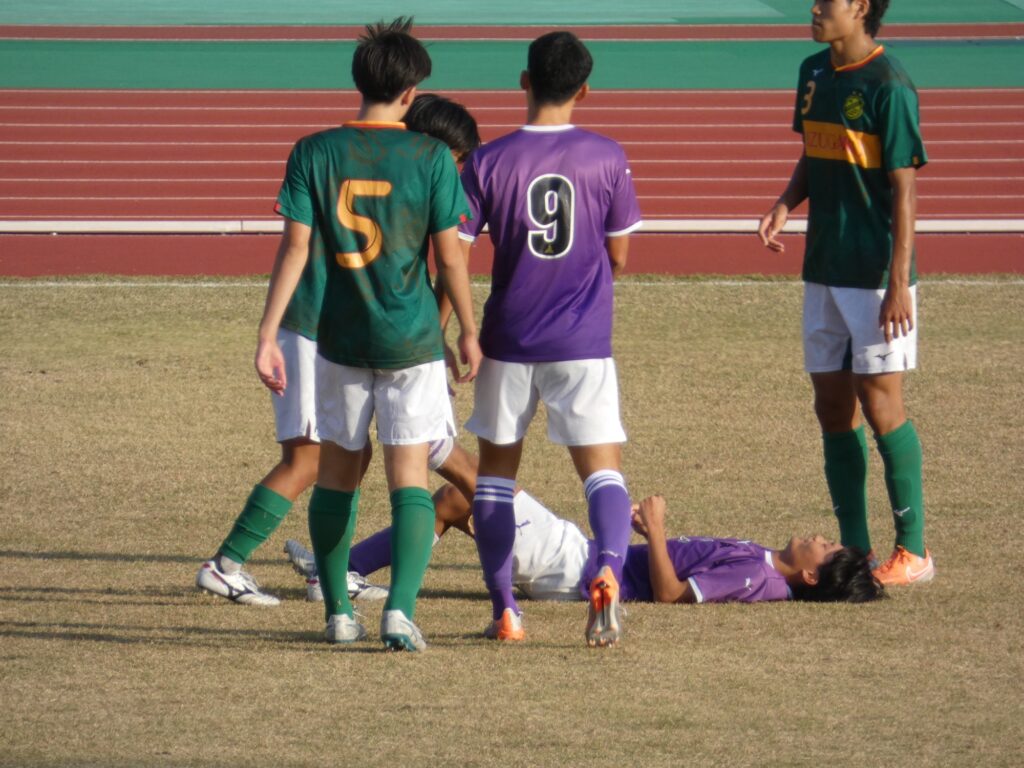 さらに後半32分、MF泉孝太郎が足を攣って一旦外に出て治療。交代はせずにプレーを続行しました。