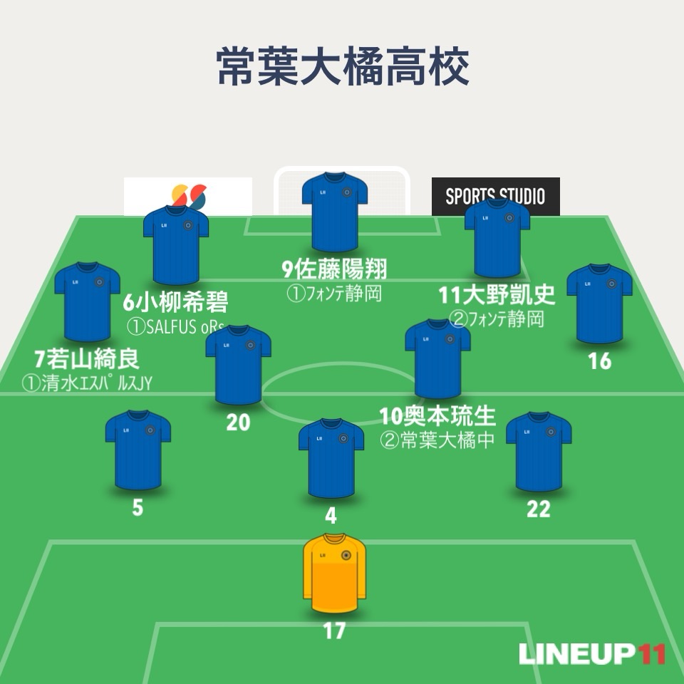 常葉大橘は3-4-2-1。ボランチに10番MF奥本琉生。左WBにMF若松綺良、シャドーはFW大野凱史とFW小柳希碧、ワントップにFW佐藤陽翔。