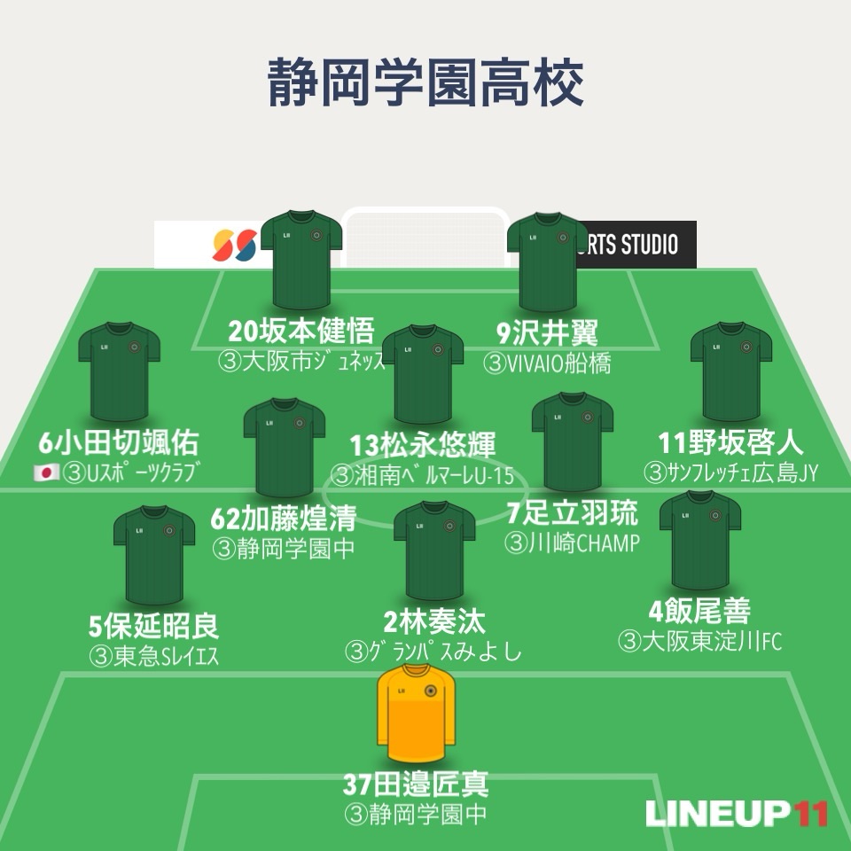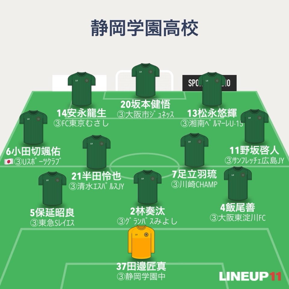 静学は新人戦までの4-4-2や4-2-3-1ではなく3-4-2-1の布陣。DF林奏汰、DF飯尾善、DF保延昭良の3センターバックにWBにはSBを務めていたMF野坂啓人とDF小田切颯佑を配置。この試合ではWBはできるだけ下がらずに3バックで対応しきるように意識しているように見えました。後半途中からFW沢井翼を入れてFW坂本健悟と2トップにし、MF松永悠輝をトップ下に置く3-4-1-2のオプションも試していました。