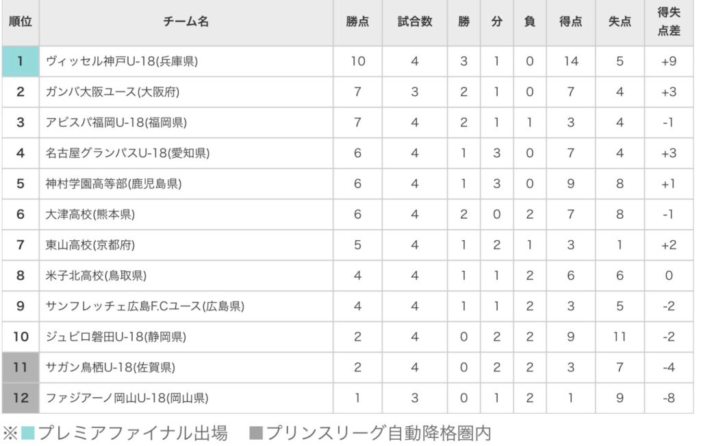 磐田U-18は10位。勝利した広島ユースは9位。まだ4試合しか消化していないので、今後上に行く可能性は十分あります。もちろんこのままズルズル残留争いを演じる可能性もあります。ここからどう上がっていくか注目。