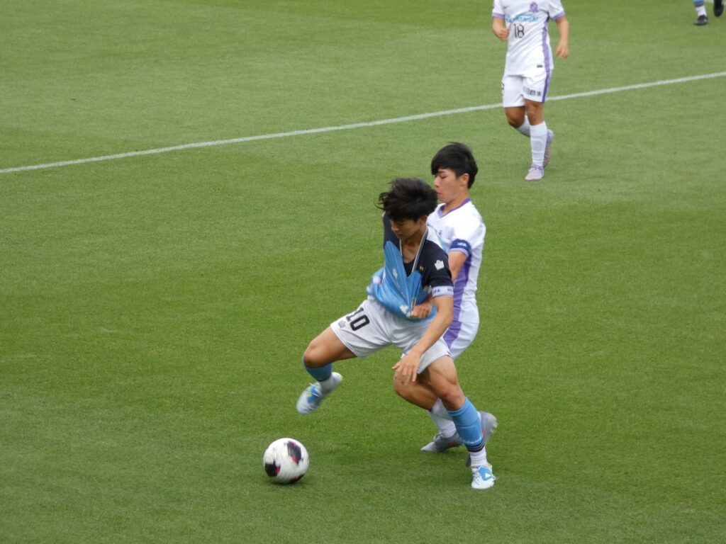 西岡は神村戦でも広島ユース戦でも圧倒的な実力を披露。ボールを奪われないし決定的なスルーパスは出せるし惜しいシュートも打ったし、あとは結果を数字でしっかり残すのみ。同じく世代別代表のMF野口蓮斗との10番対決はとも1点ずつ取り合い数上は引き分け。西岡と野口のマッチアップは頻繁に行われましたが、野口は西岡を止めることができずに後ろから引っ張ってファウルで止める場面が多く、そう言った意味では西岡の方が上手だったのかなと思います。