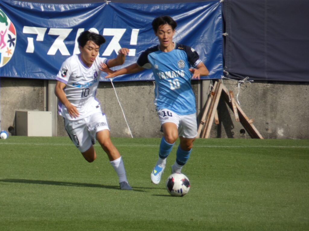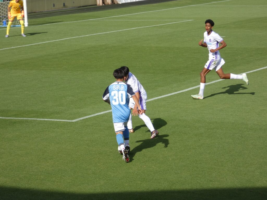 前半のフリーキックがバーに当たってしまい、惜しくも同点ゴールを逃してしまったMF中谷桜太朗。これが決まっていたらスーパーでした。162センチと小柄な割にあまり当たり負けしていない印象の左利きのテクニシャン。一見の価値ありの選手です。